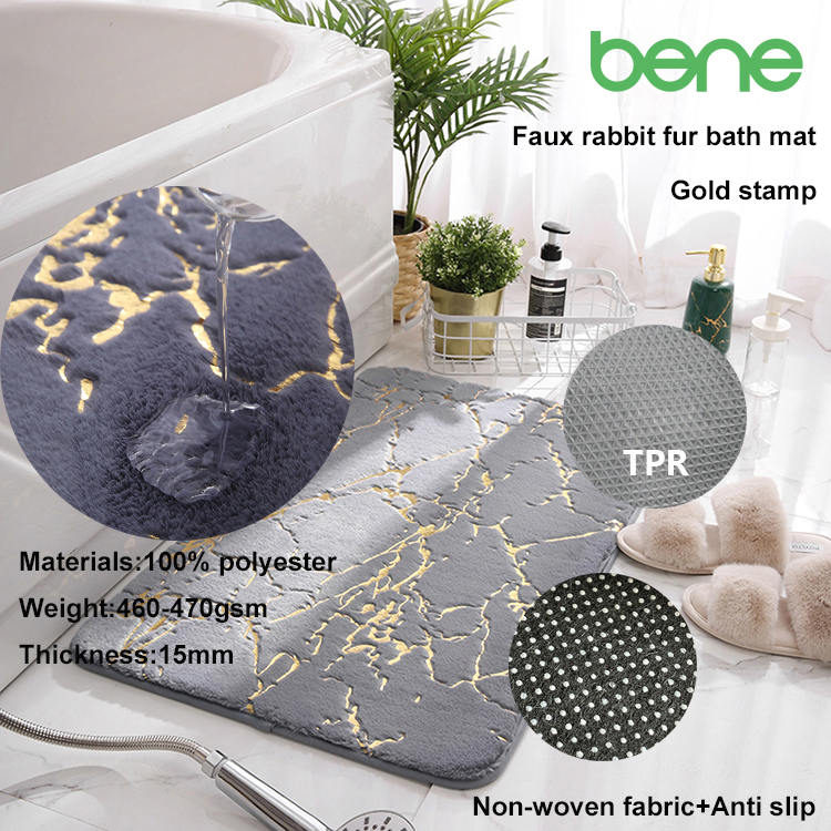 En términos de estética, el MAT cuenta con un patrón de color sólido con una textura distintiva de piel de conejo falso combinada con elegantes acentos de aluminio de oro, agregando un toque de lujo a cualquier habitación. Sus características especiales, que incluyen propiedades no deslizantes, suavidad, capacidad de lavado y absorción de agua, lo convierten en una opción práctica y elegante para mejorar su espacio.