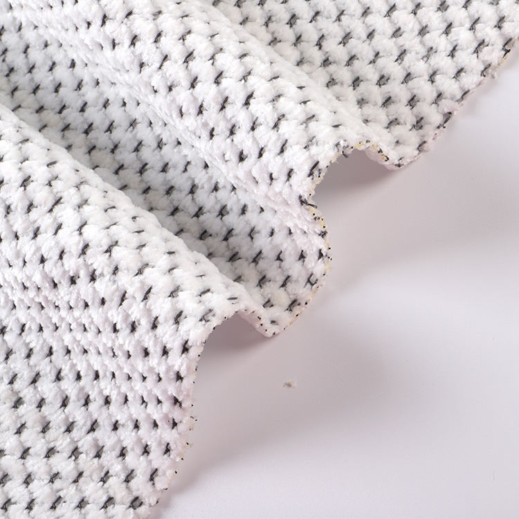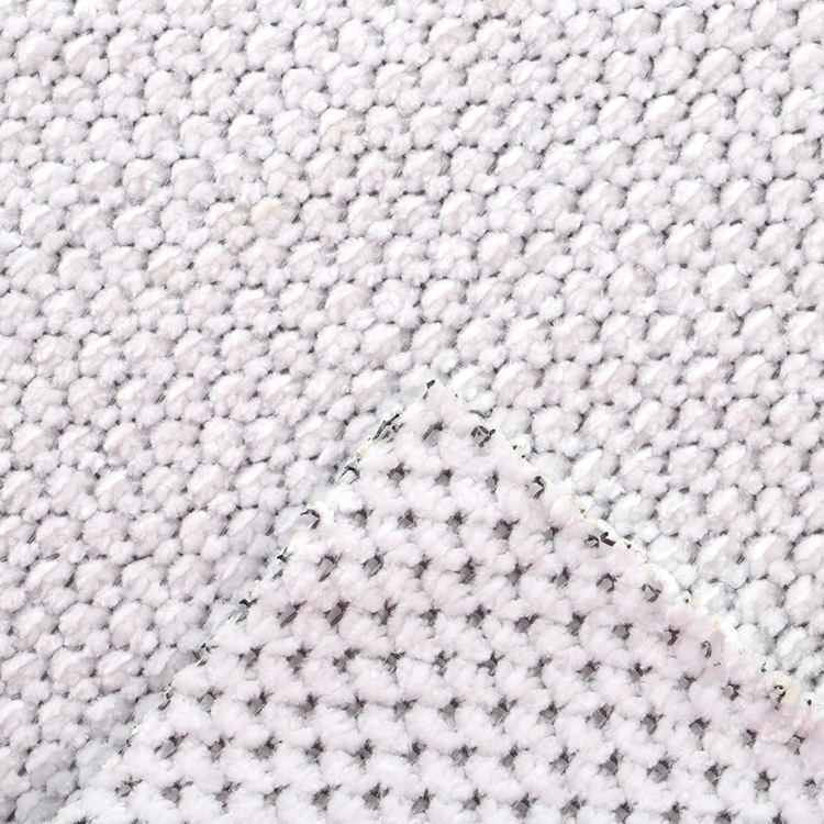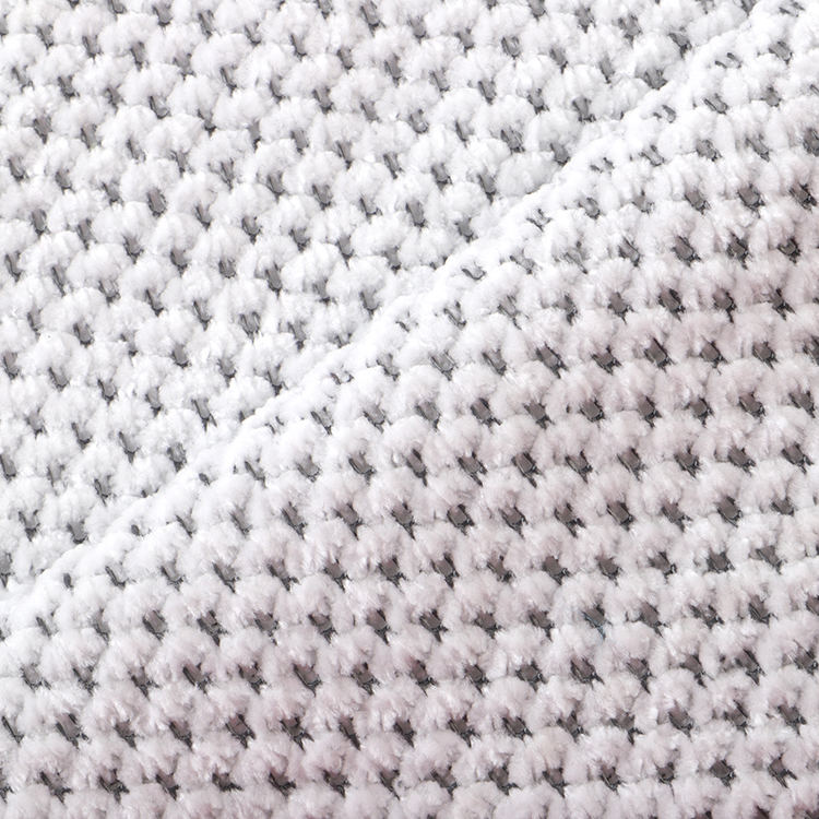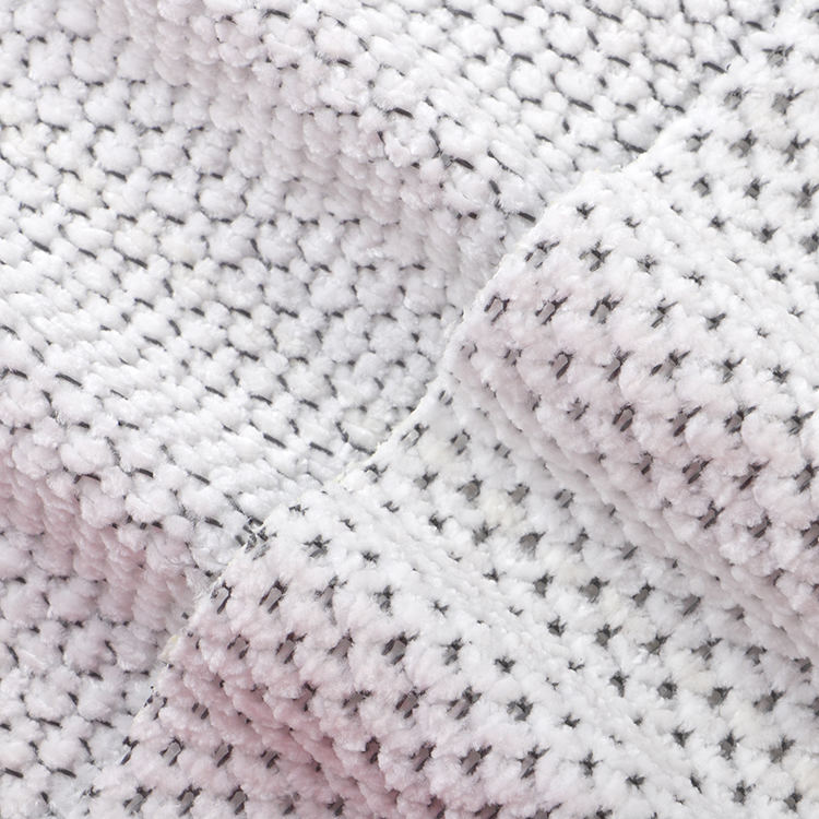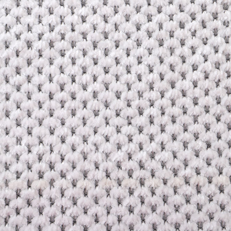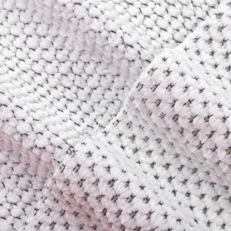 La tela Chenille A# presenta una altura de pila baja de 1 mm, lo que contribuye a su apariencia elegante y sofisticada mientras es fácil de limpiar y mantener. Las técnicas de punto utilizadas en su producción mejoran la fuerza y la longevidad de la tela, por lo que es una opción ideal para alfombras y alfombras.