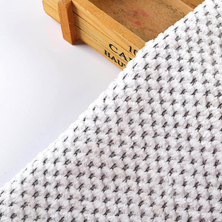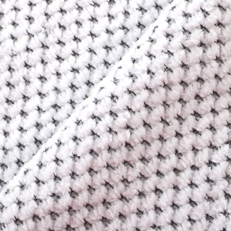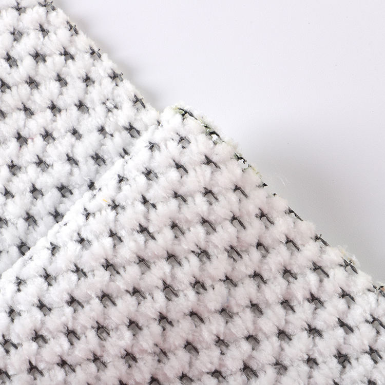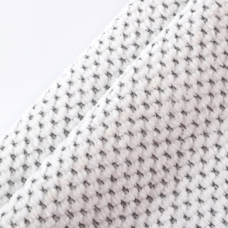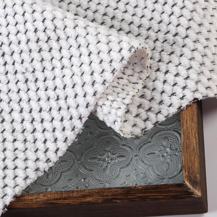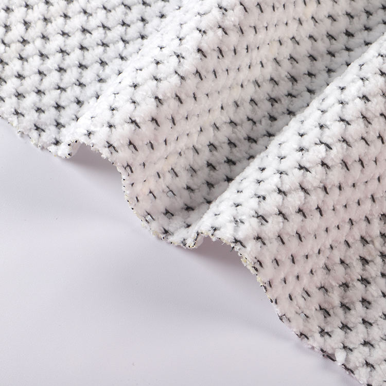 La tela Chenille A# presenta una altura de pila baja de 1 mm, lo que contribuye a su apariencia elegante y sofisticada mientras es fácil de limpiar y mantener. Las técnicas de punto utilizadas en su producción mejoran la fuerza y la longevidad de la tela, por lo que es una opción ideal para alfombras y alfombras.