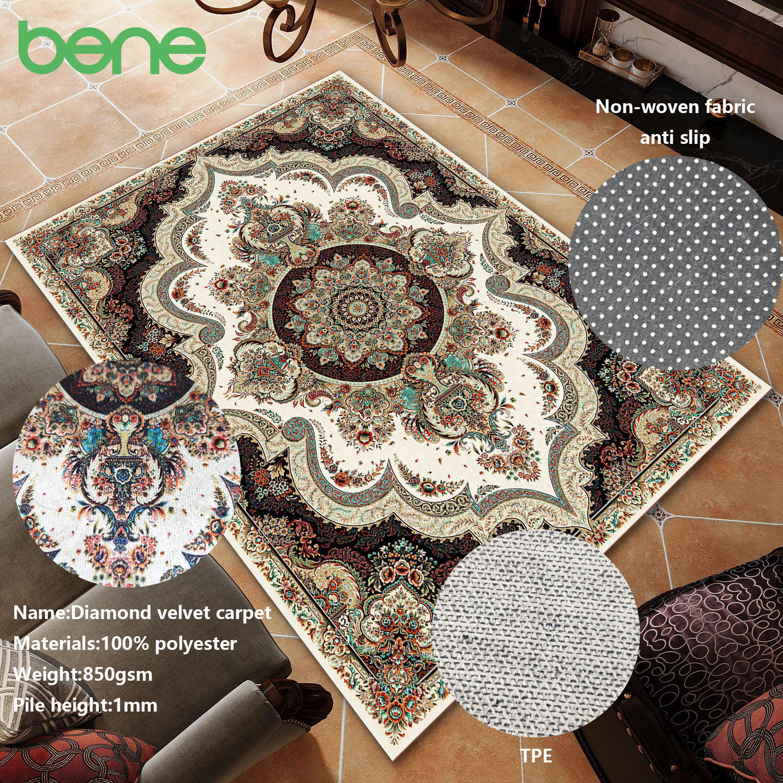 Nuestra compañía se especializa en alfombras, telas de alfombra y productos terminados. Al combinar el fondo y la superficie, rompe el modo de producción tradicional de los altos costos de producción y la baja eficiencia en la industria de las alfombras, lo que hace que la producción de alfombras sea más simple y eficiente. Bene tiene sus propias fábricas de tejido, teñido/impresión, y fábricas de procesamiento de alfombras terminadas, lo que nos permite controlar toda la cadena de producción, manteniendo la buena calidad y el tiempo de entrega. Con un equipo de más de 20 ingenieros de telas, estamos desarrollando nuevas telas de alfombras cada trimestre en función de las tendencias del mercado y también podemos proporcionar servicios personalizados de acuerdo con los requisitos de nuestros clientes. Nuestras alfombras y alfombras son adecuadas para varios escenarios, que incluyen salas de estar, habitaciones, baños, cocinas, entradas y salidas, y más. Estamos orgullosos de proporcionar productos de alta calidad y un excelente servicio al cliente, y nuestro objetivo es convertirnos en un fabricante líder de alfombras y alfombras en China e incluso a nivel mundial. También podemos al por mayor Alfombra de oración de terciopelo de diamantes a granel. Tenemos exportación en todo el mundo._00.jpg)